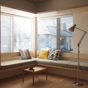 外を身近に感じる環境の中で、家全体が窓辺であるようにしたいと考えました。空間に対して窓を大きめに設え、かつ、室内側に内庇を設けています。そこに立つと、家の中というよりも街にいる気がしてきます。街との狭間に居場所をつくり、街と繋がる、小さくない家が出来上がりました。