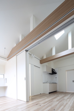 - 木造賃貸アパートの2階を吹き抜けトップライトにして広く見せる工夫差別化