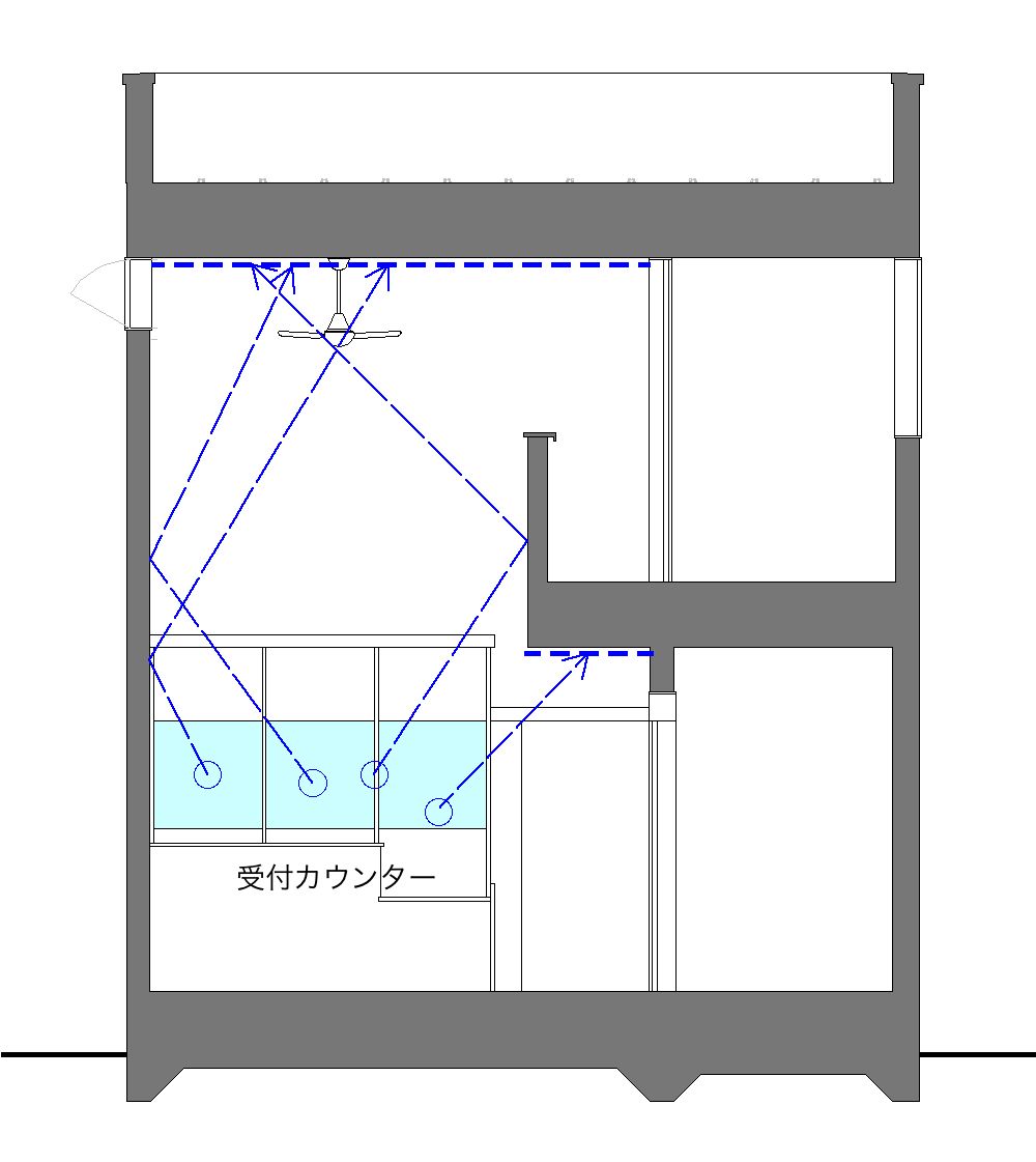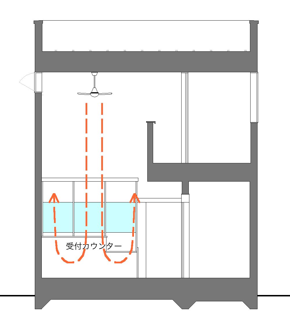 循環させる機器は、天井に設置する羽根扇=シーリングファンが選ばれました。