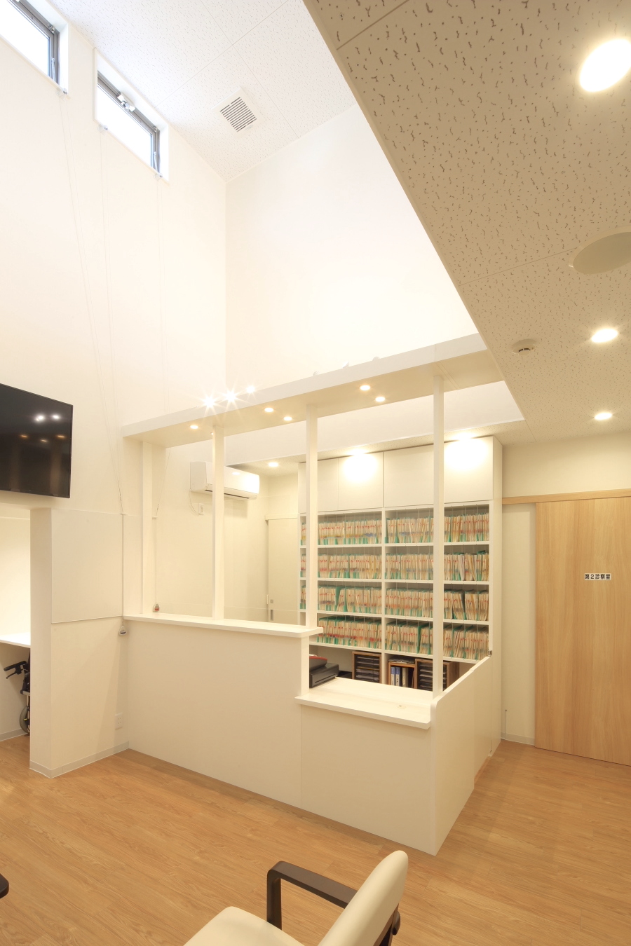 - 小児歯科医院の受付カウンターとカルテ棚を間仕切りに利用する