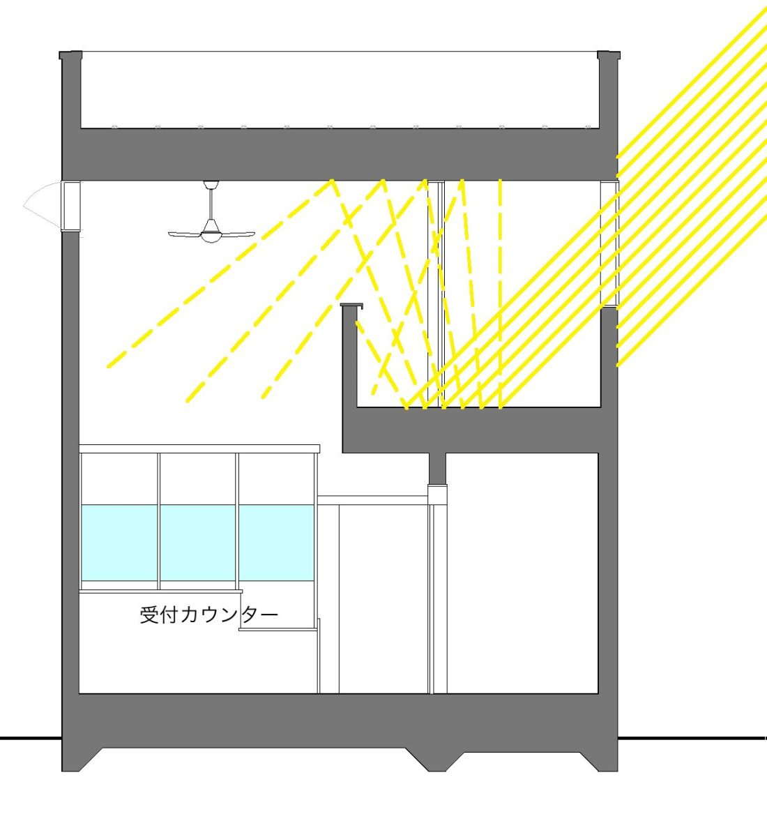 そこで吹抜け空間が一様に明るい印象になるためには、壁面を明るく照らすことで明るい印象になれるようにしました。