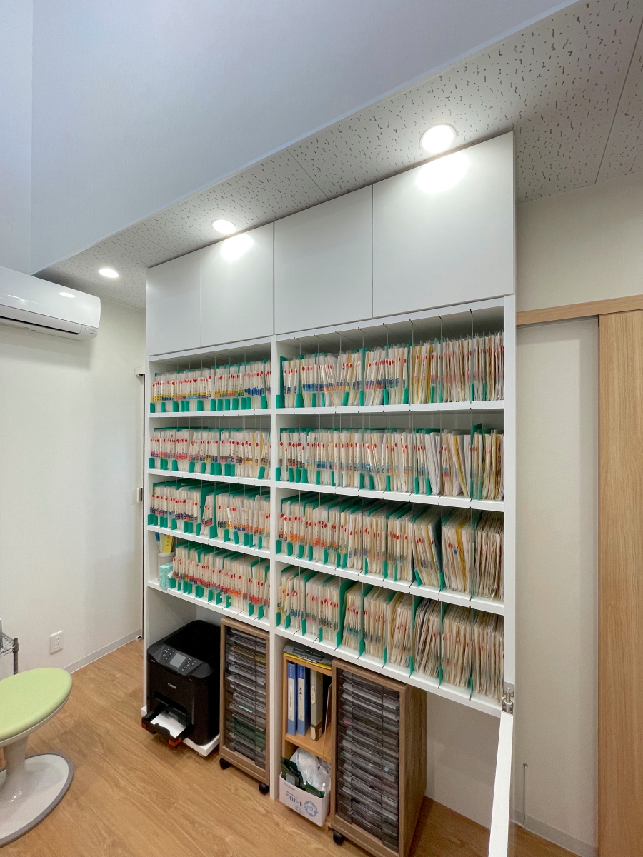 - 中央部は、扉無しのカルテファイルを収納する場所