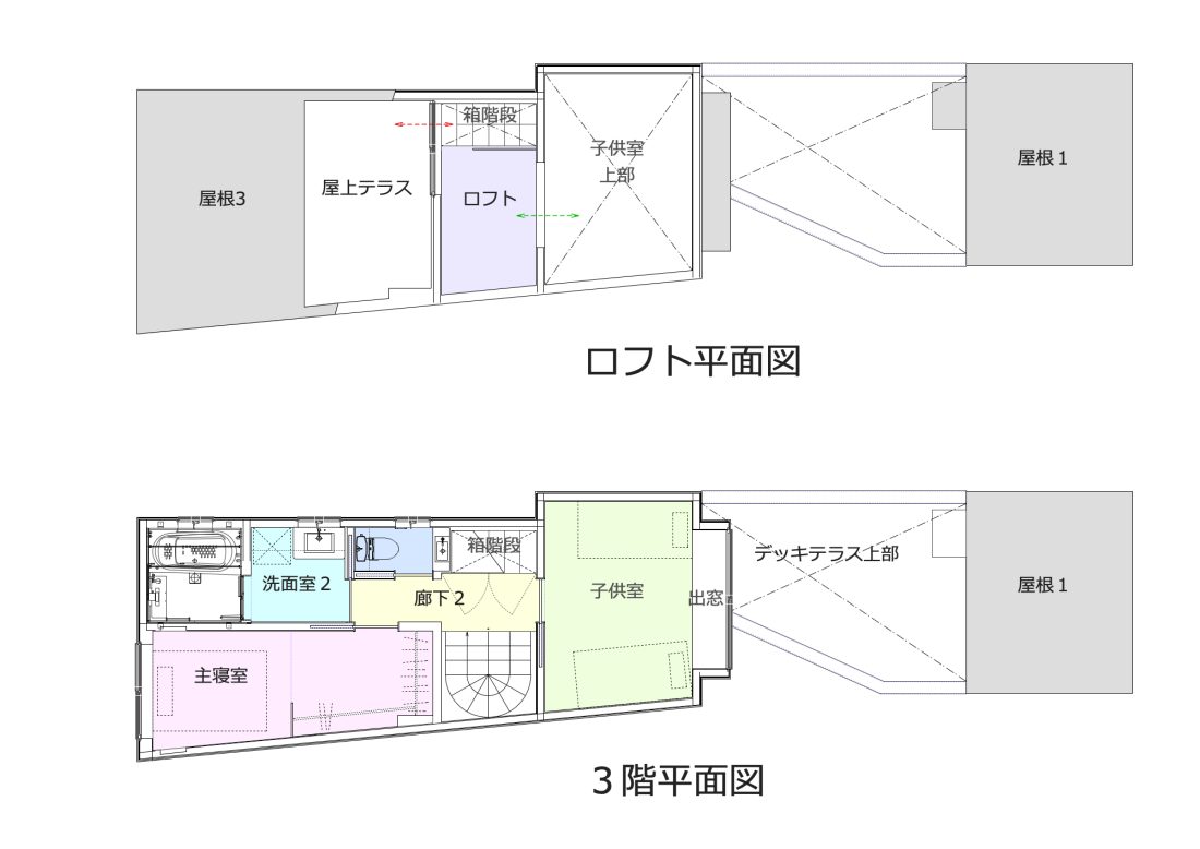 今回は、その上階となる3階のプランをご紹介します。ここには寝室や子供室といった、よりプライベートな空間を配置しました。