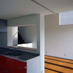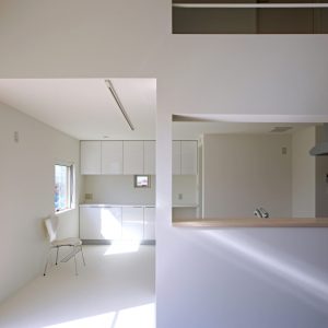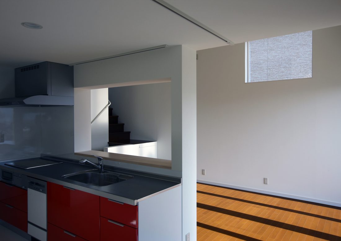 外観からは予想できない空間の広がり・奥行き感を獲得した、家の中のどこにいても、家族がお互いの気配を感じることが出来る家です。