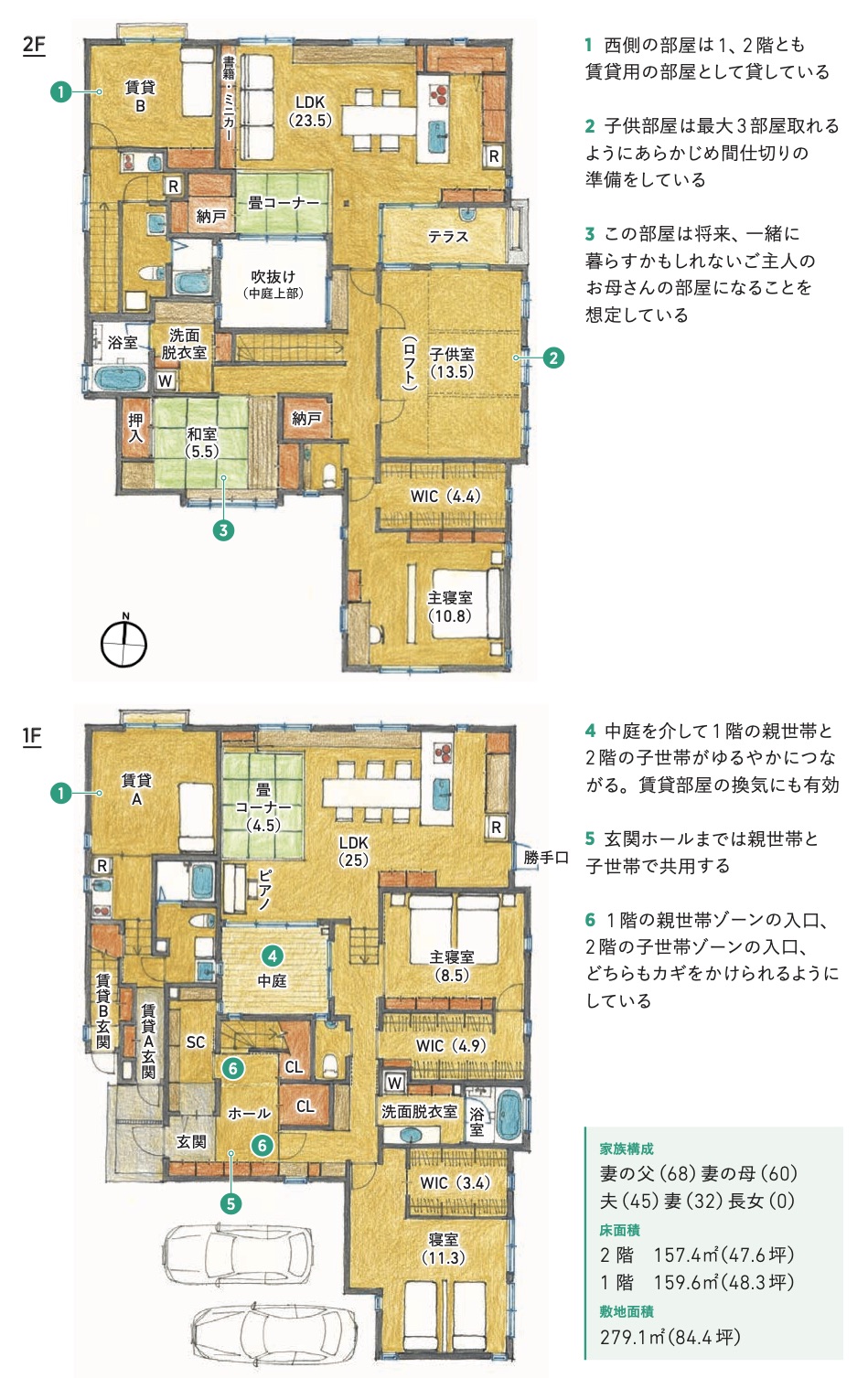 小林眞人の設計した二世帯住宅の間取りが掲載されています。