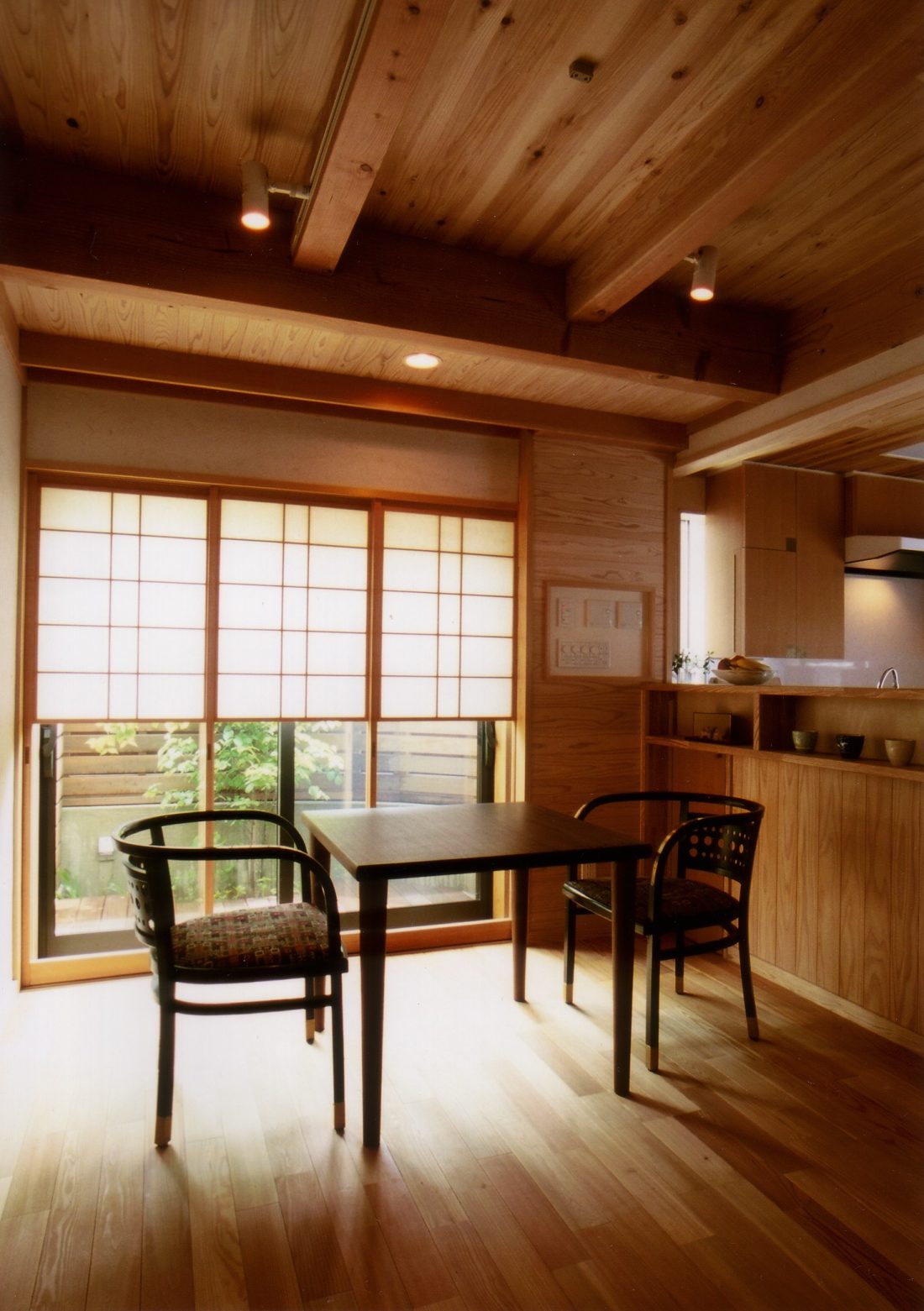 ③窓にも障子を入れて、柔らかい光を入れながら視線はカットしています。