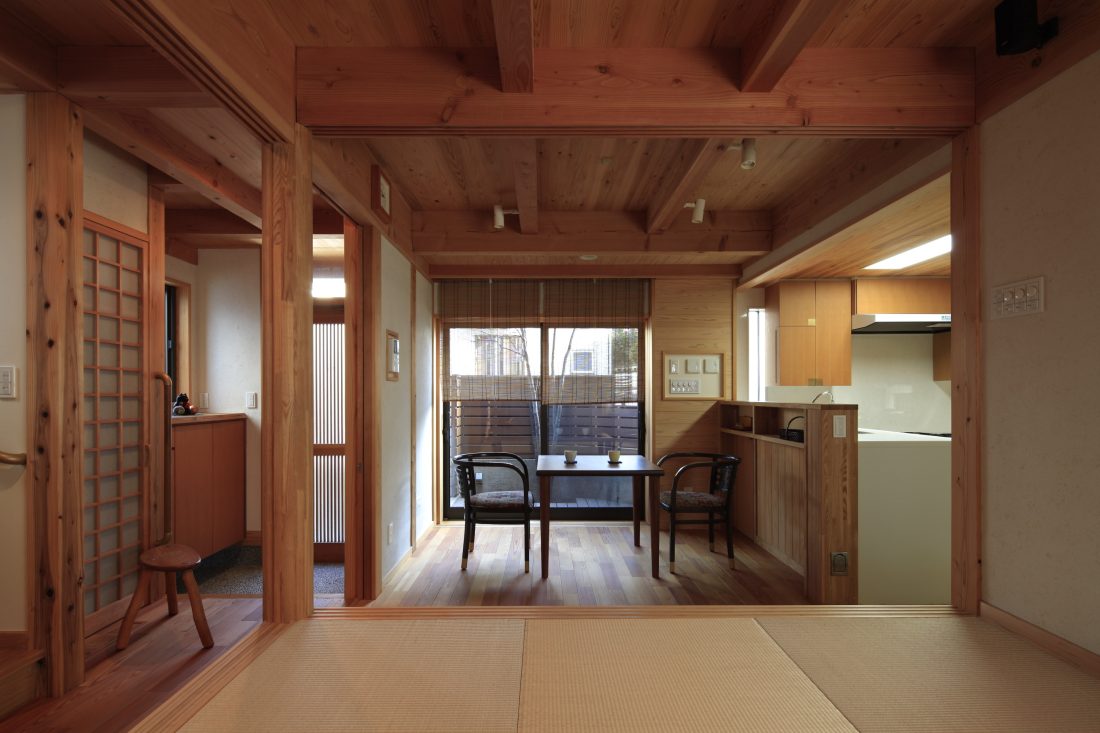 ④昔の民家のように梁など骨太の構造材が見えるように計画しています。約19年経ってきれいな飴色に変わってきました。