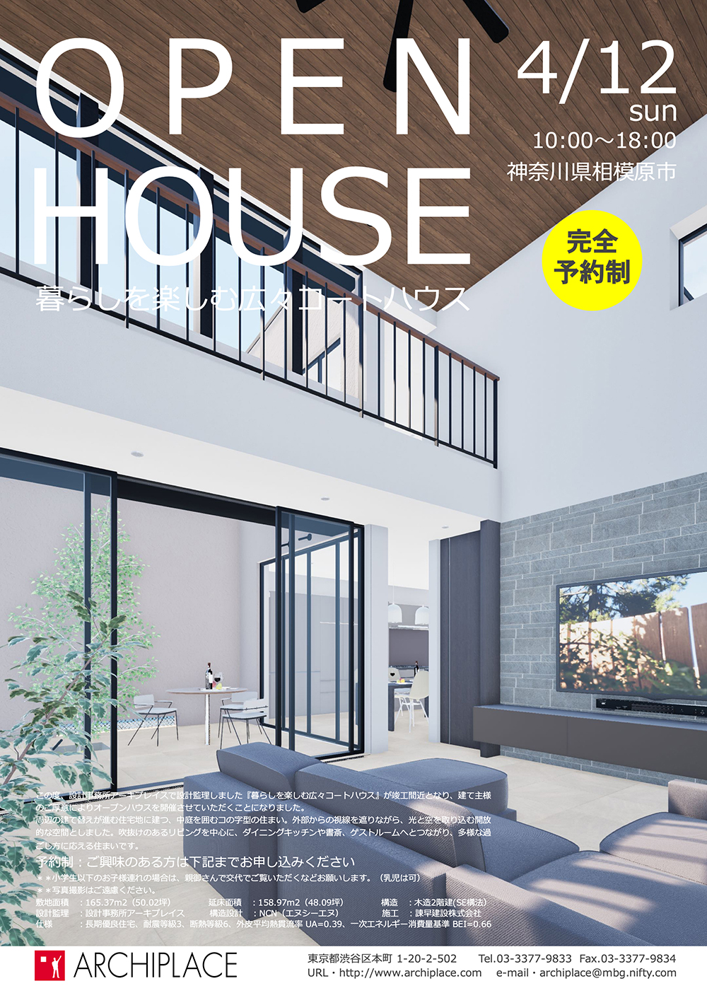 連絡先 :archiplace@mbg.nifty.com 見学会のお申し込み 予約制(無料)